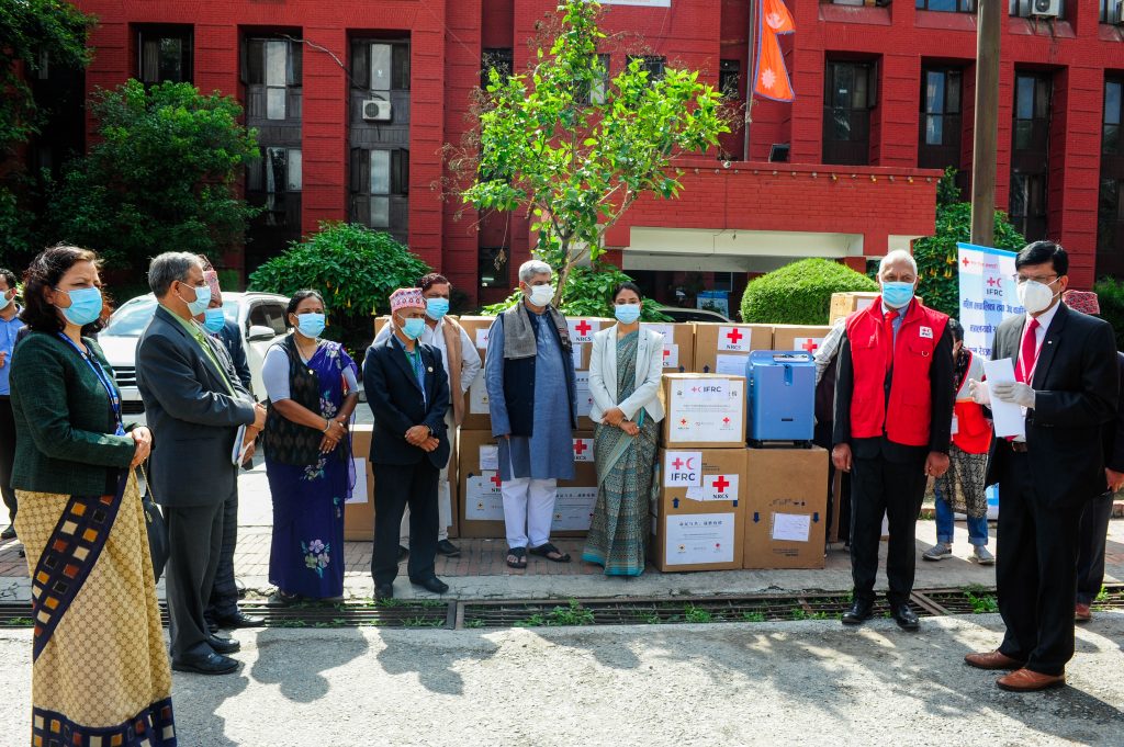 Dr. Netra Prasad Timsina, Chairperson of Nepal Red Cross Society, said, “So far, Red Cross services have reached almost 400,000 people, as volunteers are making door-to-door visits, providing people with life-saving support such as food for isolated families and information that helps reduce the burden at hospitals where medical professionals are extremely pressed.
