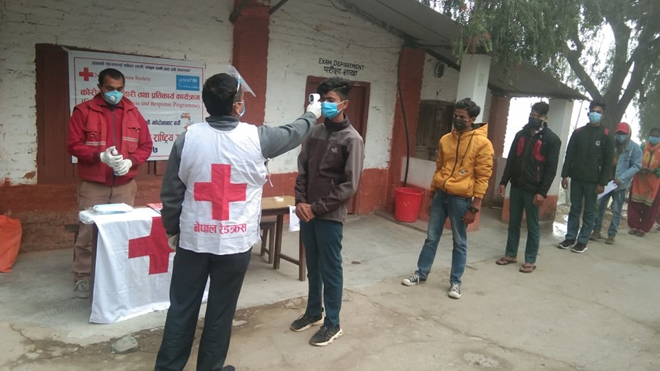 It was a cold, foggy morning in Gadhwa Rural Municipality in Dang District in western Nepal when students started to arrive at the entrances of their schools to sit for the grade 12 exams. Before they can enter, however, they are met by a team from Nepal Red Cross Society (NRCS), who had set up help desks at the entrances.