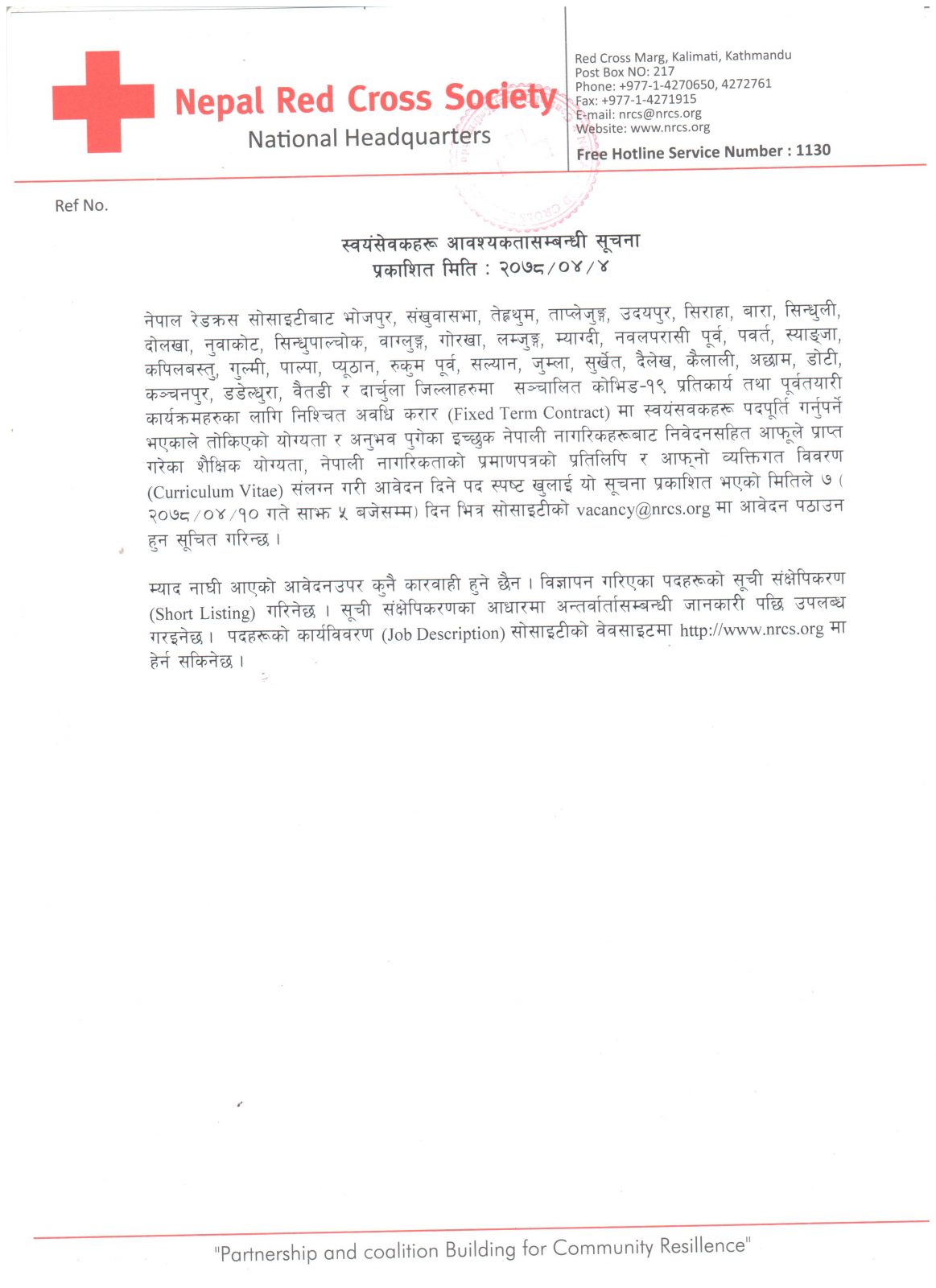 Vacancy Announcement for Professional Volunteers